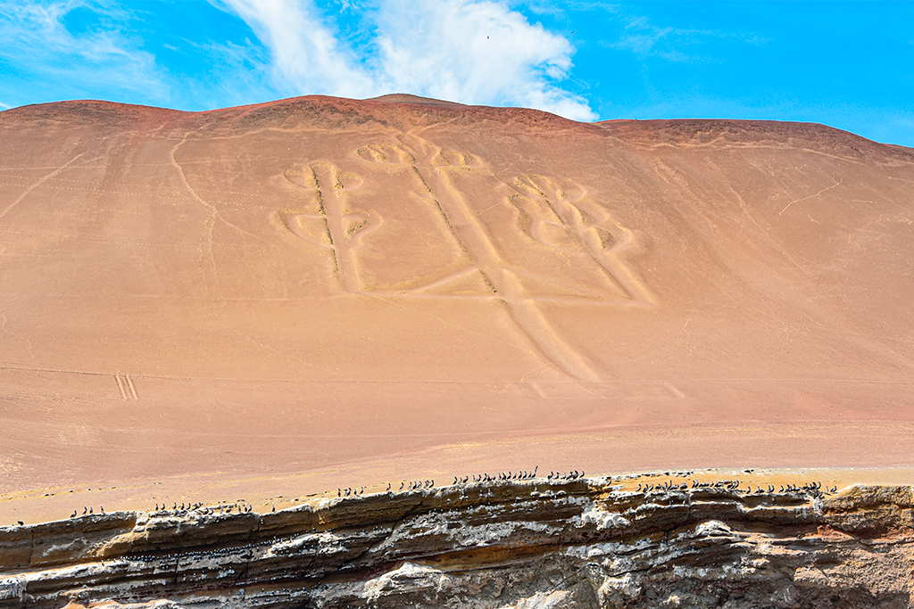 Empezamos deteniéndonos en la figura sobre la arena conocida como “El Candelabro” donde el guía nos explicará las diferentes teorías sobre su función. Continuamos navegando con la refrescante brisa del mar sobre nosotros hasta llegar a las Islas y rodearnos de la abundante vida marina. Lobos de mar, pingüinos de Humboldt, una infinidad de aves guaneras y con suerte algún curioso delfín espera por nosotros.